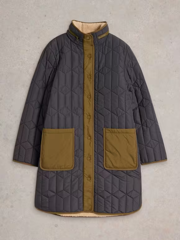 High Neck Lined Quilted Coat