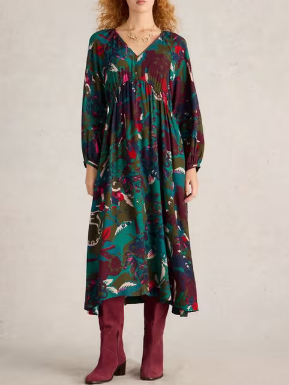 Midi Dress In Green Print 2700