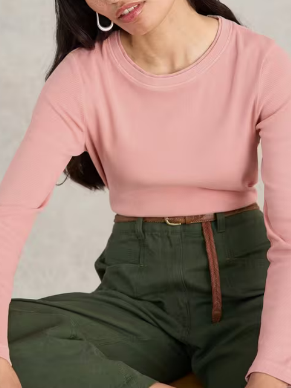 Casual Style Long Sleeve Ribbed Tee