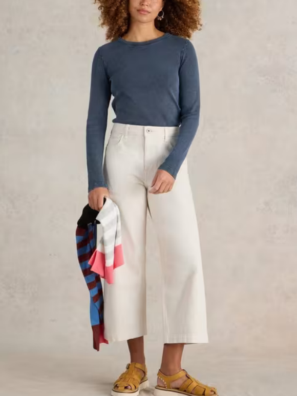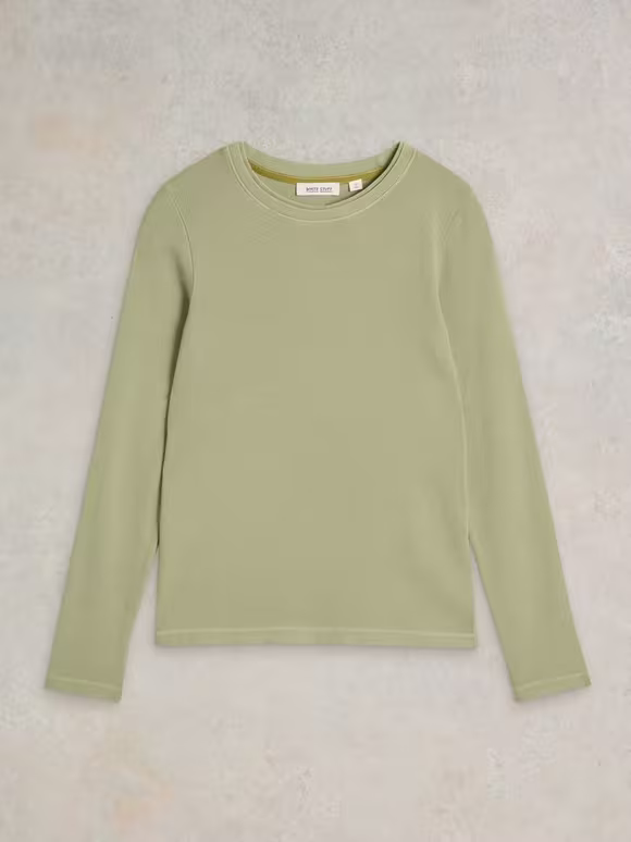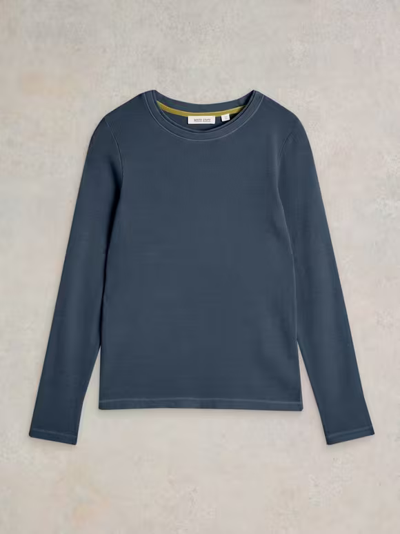 Casual Style Long Sleeve Ribbed Tee 1606